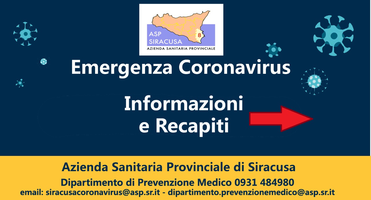 | Sedi drive in per i tamponi rapidi |  | Sicurezza per i lavoratori |  | Organizzazione della gestione sanitaria dell'emergenza Coronavirus - Atti Generali e Piani emanati dall'Asp di Siracusa |